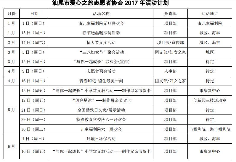 汕尾市愛心之旅志愿者協(xié)會2017年活動計劃