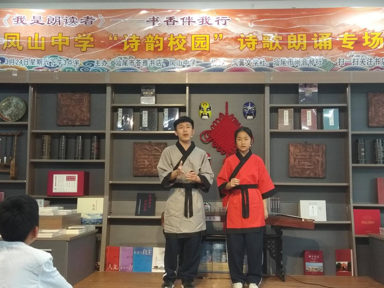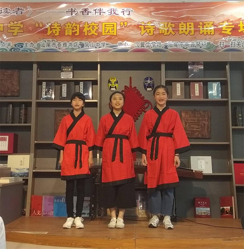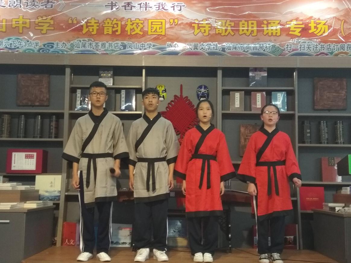 近日,由鳳山中學與薈雅書店(原育才書店)聯(lián)合主辦的“詩韻校園”詩歌朗誦專場,在汕尾市薈雅書店舉行,共有8個朗誦節(jié)目、3個演奏曲目,現(xiàn)場一百多人參加。創(chuàng)建詩韻校園,意在營造濃郁的詩韻氛圍,讓學生分享詩歌的美妙,感受詩歌的樂趣,記載詩歌生活,豐富了學生的第二課堂,讓詩歌的光芒照亮校園,照進每一個學生的生活里。 朗誦會上,學生們用飽含深情的語言,紛紛上臺朗讀了關于友情親情、關于故鄉(xiāng)的古典詩歌、現(xiàn)代詩歌以及自己創(chuàng)作的詩詞,借此抒發(fā)自己對友誼的贊美、對家人的思念和對故鄉(xiāng)的熱愛之情。整個朗誦會,氣氛非常熱烈和活躍,現(xiàn)場的觀眾與參加朗誦的同學們紛紛表示,通過參與此次“詩韻校園”詩歌朗誦會,使大家對詩歌朗誦技巧的認識更加深刻,同學們都表示要努力學習文化知識,積極參與社會實踐,為將來報效祖國和人民做好準備! 鳳山中學自去年6月創(chuàng)建“詩韻校園”活動以來,先后與汕尾市薈雅書店(原育才書店)聯(lián)合主辦了兩次詩歌朗誦專場、舉辦了校性“迎元旦”詩歌朗誦比賽等,并通過宣傳畫、黑板報、詩畫長廊、主題墻繪等營造了良好的校園“詩韻”韻味。許多同學表示:通過這些活動,增長了知識,激發(fā)閱讀和學習寫作的興趣,希望學校能多舉辦這樣的活動。 |