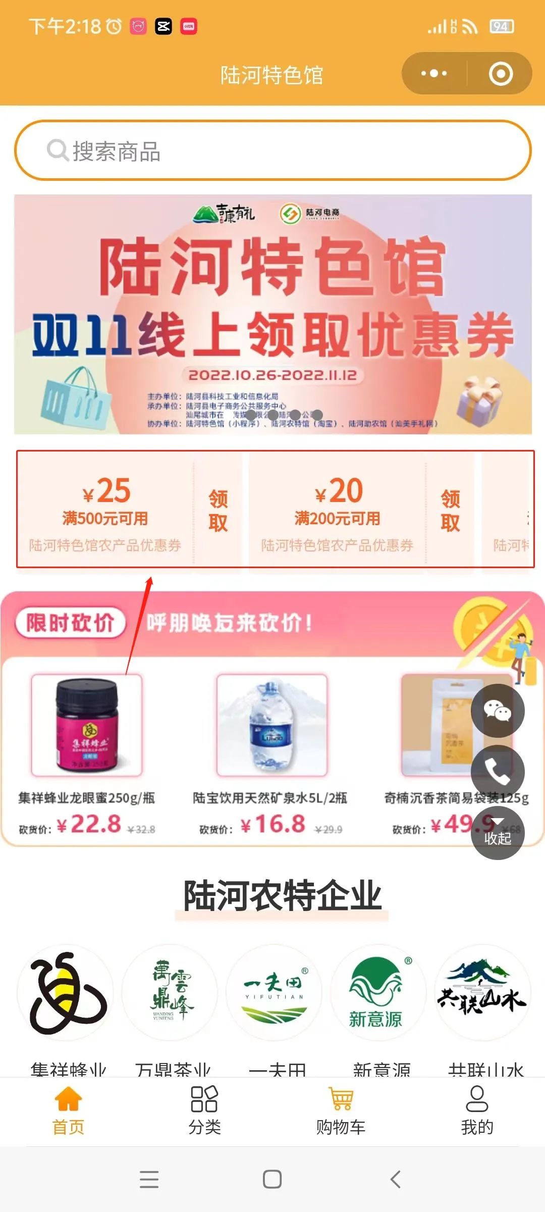 先領(lǐng)券 再購(gòu)物 點(diǎn)擊下方圖片鏈接進(jìn)入界面領(lǐng)取 拼團(tuán)砍價(jià) 雙十一砍價(jià)商品 數(shù)量有限 領(lǐng)完即恢復(fù)原價(jià) 機(jī)不可失 失不再來(lái) 趕緊叫上親朋好友來(lái)砍一砍 聯(lián)系我們 微信號(hào):lhds555 (請(qǐng)?zhí)砑涌头⑿抛稍? 聯(lián)系電話:0660-5567222 地址:陸河縣河田鎮(zhèn)人民北路1號(hào)電子商務(wù)公共服務(wù)中心三樓 掃一掃二維碼驚喜不斷 THE END |