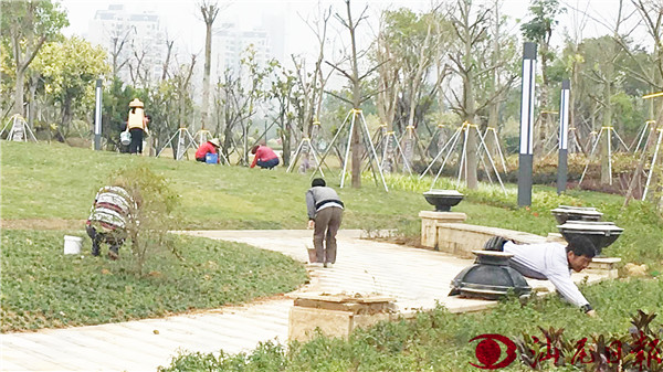 : 近日,園林工人在市區(qū)海濱大道中的綠化帶上忙著清除雜草。我市對海濱大道進(jìn)行升級改造,新種上了一批花草樹木,園林工人加強(qiáng)養(yǎng)護(hù)管理不放松,保持綠化帶整齊美觀。