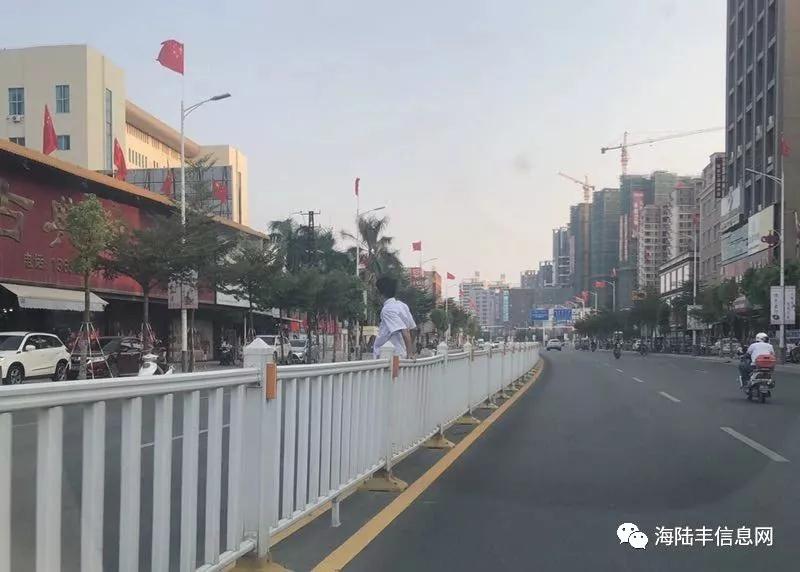 今天,在陸豐東海大道(金德豐超市附近),一男子為了圖方便,不顧自身安危,攀爬護(hù)欄橫穿馬路。