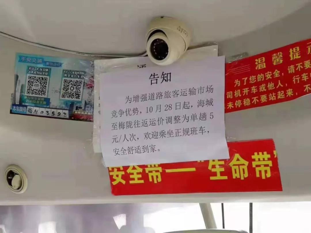 為增強(qiáng)道路旅客運(yùn)輸市場競爭優(yōu)勢,10月28日起,海城至梅隴往返運(yùn)價(jià)調(diào)整為單趟5元/人次,歡迎乘坐正規(guī)班車,安全舒適到家。