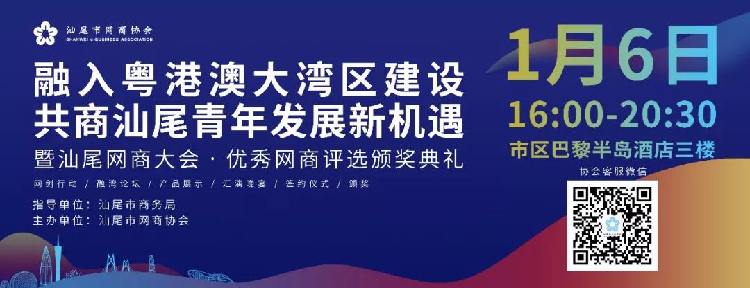 為進一步帶動汕尾企業(yè)積極融入到粵港澳大灣區(qū)發(fā)展浪潮,引領一批敢于創(chuàng)新、銳意進取的電子商務行業(yè)優(yōu)秀代表,為我市電子商務產(chǎn)業(yè)發(fā)展和實施鄉(xiāng)村振興戰(zhàn)略貢獻力量。 汕尾市網(wǎng)商協(xié)會主辦“融入粵港澳大灣區(qū)建設 共商汕尾青年發(fā)展新機遇”活動。 汕尾融灣,對不同的企業(yè),從不同的角度看,即可能是機遇,也可能是挑戰(zhàn)。作為汕尾企業(yè),應該如何把握機遇迎接挑戰(zhàn)?我們邀請來自大灣區(qū)11個地區(qū)、市的10多家商協(xié)會代表從大灣區(qū)主人角度看,暢談歡迎什么樣的汕尾企業(yè)或個人如何融入大灣區(qū)? 1 現(xiàn)場展位報名須知 1.汕尾特色產(chǎn)品企業(yè):農(nóng)特產(chǎn)品、扶貧產(chǎn)品、特色產(chǎn)品、手工藝品等。2.參與汕尾市網(wǎng)商協(xié)會2019年度優(yōu)秀網(wǎng)商評選活動的企業(yè);關(guān)于舉辦2019年度汕尾網(wǎng)商大會暨 優(yōu)秀網(wǎng)商評選、頒獎活動的通知(點擊超鏈接了解詳情)3.參與贊助伴手禮的企業(yè);活動論壇|粵港澳大灣區(qū)(9+2)協(xié)會大咖齊聚汕尾,還不趕快來參加!(點擊超鏈接了解詳情)4.在本次大會中提供現(xiàn)場抽獎禮品的企業(yè)。請掃描二維碼參與 經(jīng)籌備組審核通過,發(fā)送確認通知函為準! 大會時間:2020年1月6日15:00-20:30 大會地點:汕尾市區(qū)巴黎半島酒店三樓 咨詢電話:13302688777 指導單位:汕尾市商務局 主辦單位:汕尾市網(wǎng)商協(xié)會 1 1.風采展區(qū)——現(xiàn)場設有產(chǎn)品展示,本地產(chǎn)品均可參展和X展架擺放。 2.交流展區(qū)——在會場的兩邊位置設置交流區(qū)域,您可進行優(yōu)秀項目推介。 本次大會展位免費開放,不收取任何費用。參加本次網(wǎng)商大會,現(xiàn)場網(wǎng)紅免費幫您直播帶貨! 幫助公眾發(fā)現(xiàn)您,與您零距離接觸,宣傳優(yōu)秀產(chǎn)品與案例演說。 讓公眾更了解您! 一個絕佳的機會幫助你對接政府、企業(yè)等資源,助您實現(xiàn)強強聯(lián)手,合作共贏。 讓同行更了解您! 本次大會將邀請粵港澳大灣區(qū)(11個地區(qū)、市)10多家商協(xié)會代表,為參展產(chǎn)品在創(chuàng)新市場競爭中提供理想的宣傳平臺。 讓各行業(yè)更了解您! |