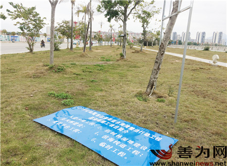近日,記者在金湖路香湖花園附近看到,一塊較大的施工項(xiàng)目簡介告示牌倒在綠化帶上,影響市容,希望有關(guān)部門安裝好。汕尾日報(bào)記者 鄧幗梅 攝
